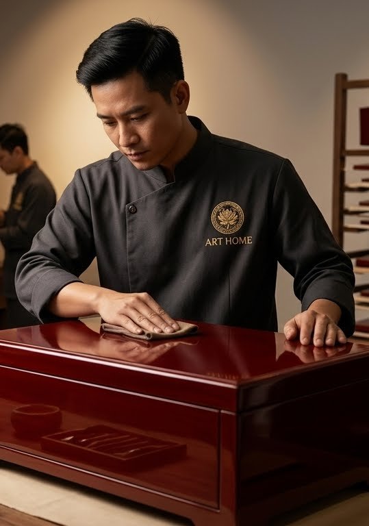 Art Home mang đến những sản phẩm sơn mài cao cấp được chế tác tỉ mỉ bởi các nghệ nhân lành nghề. Mỗi chiếc tủ, hộp quà hay vật phẩm trang trí đều là sự kết hợp hài hòa giữa kỹ thuật sơn mài truyền thống và phong cách thiết kế tinh giản hiện đại.
